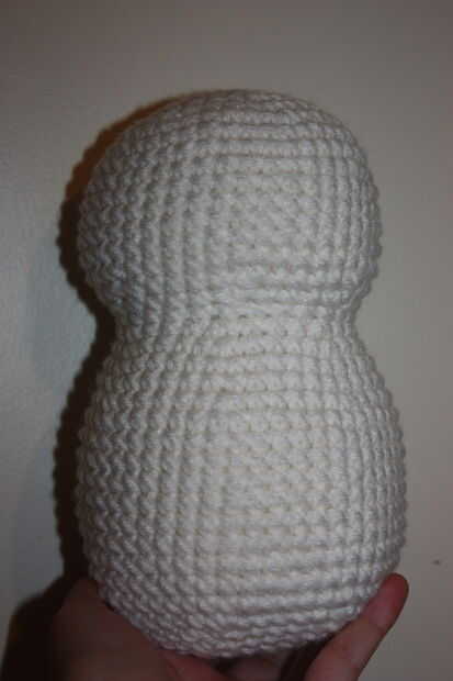 El primer paso es el pedazo de cabeza/cuerpo en hilo blanco de ganchillo. Asegúrese de rellenar el cuerpo, ya sea marcha o antes de completar los últimos asaltos. Utilizan la cola cuando termine cerrar el agujero en la parte inferior.