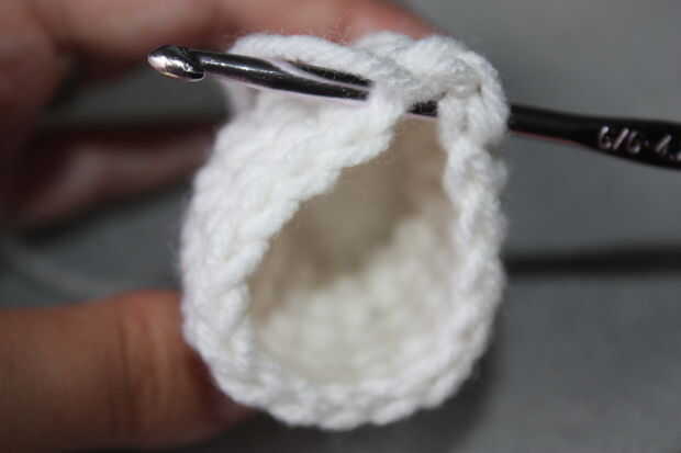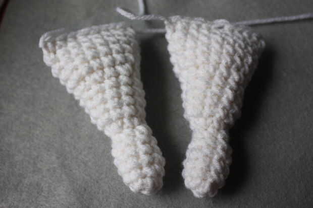 Hacer dos brazos con hilo blanco. Para cerrar el brazo se inserta su anzuelo un St sc en cada lado. Usted será sc ellos juntos.