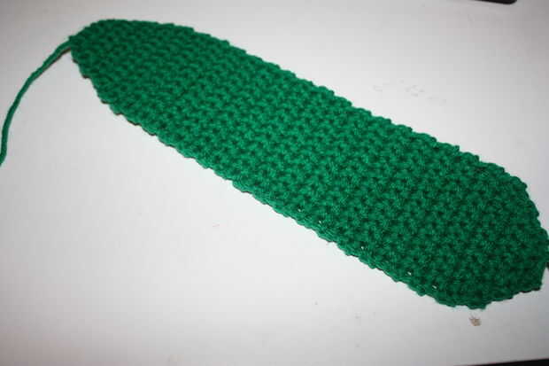La cáscara verde se hace en tres pasos antes de adjuntarlo al cuerpo. En primer lugar, se hace la base de la concha. En segundo lugar, se hace la cresta que va alrededor del borde de la concha. En tercer lugar, la base y la cresta se unen para forma la cáscara terminada.