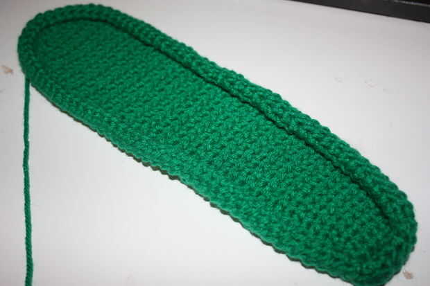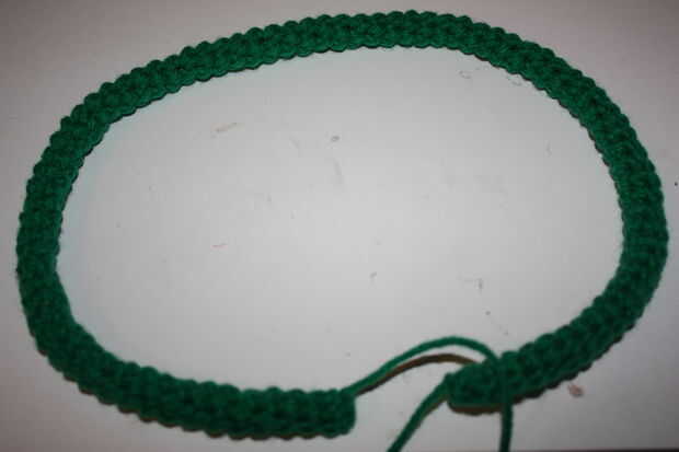 Conecte el principio de la ch con una SC. continuar a sc en rondas hasta que el cable creado es lo suficientemente larga para rodear el borde exterior entero de la base de la concha.
