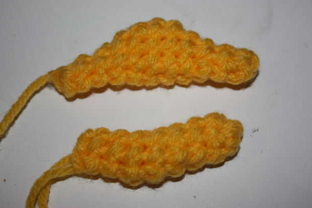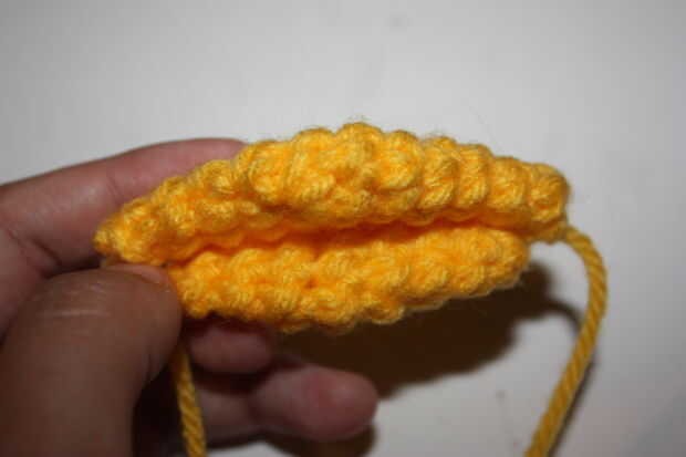 La boca se compone de dos piezas separadas que se cosen juntos. Hacer la parte inferior y la parte superior, luego use una de las colas a coser la boca juntos. La pieza de arriba debe ser un poco mayor que la pieza inferior. Se extiende ligeramente sobre la pieza de la parte inferior a ambos lados.