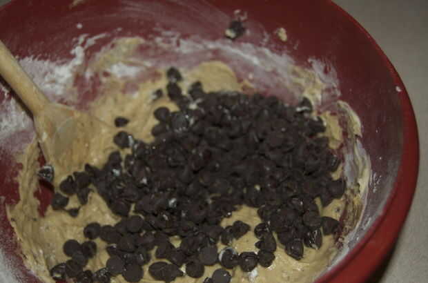 Revolver el Chocolate chips hasta distribuida uniformemente a lo largo de la masa.