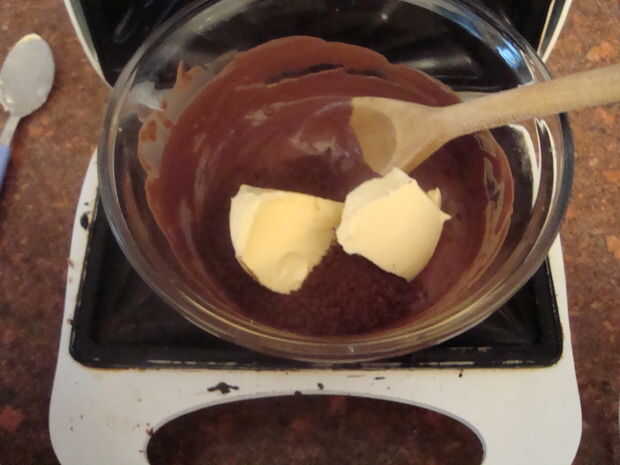poner la mantequilla y el café instantáneo y revuelva bien.