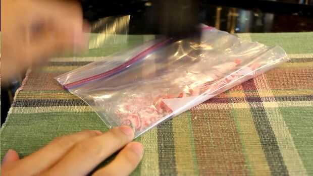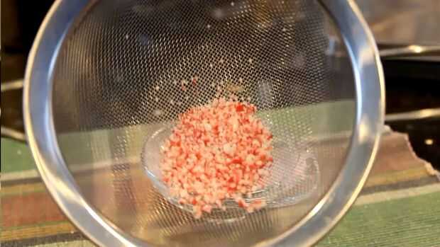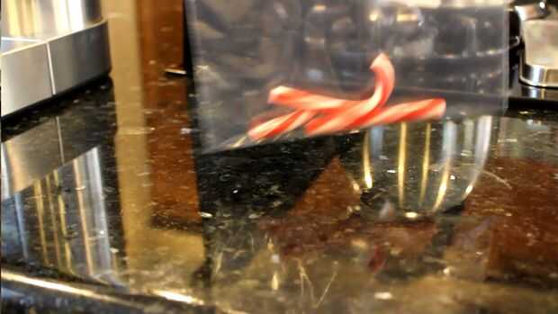Desenvuelva un bastón de caramelo y meter en una bolsa de plástico capaz de sello. Expulsar todo el aire de la bolsa y doblar un par de veces. Sobre una superficie no deteriorables (es decir. tierra fuera, dura superficie de piedra, alfombras, etc.) utilizar un objeto pesado como un ablandador de carne o martillo para aplastar a su bastón de caramelo. Asegúrese de que el caramelo se aplasta como finamente como sea posible. A continuación, ejecute el caramelo triturado a través de un tamiz para eliminar grandes partículas (las partículas deben estar separadas de mitad y mitad).