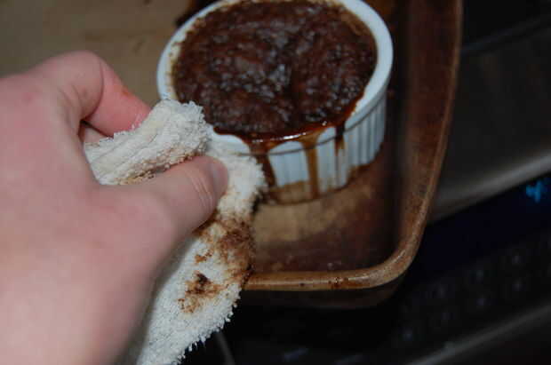 Poner en un horno de 350 grados Fahrenheit grados durante 20-25 minutos, o hasta que la masa ha llegado a la cima y pegajosa al tacto. (El método del palillo no funciona aquí). Mis burbujearon sobre un poco, y si desea puede tomar un trapo húmedo y limpie los bordes.