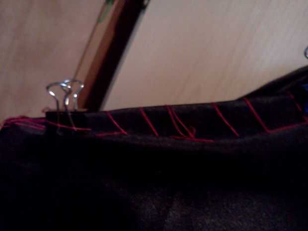 Step5: entonces añadir su hilván encima de los hombros con el hilo rojo en el escote.