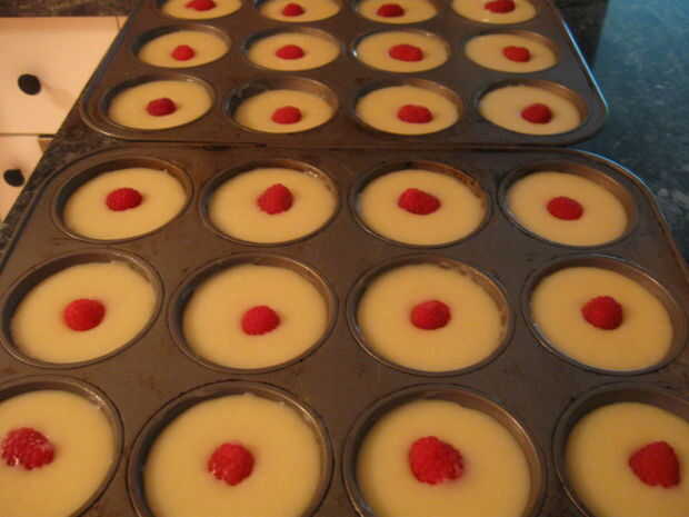 Si te gusta bayas y quiere la torta a ser más colorido, sólo caer y distribuir un contenedor de metal de frambuesas, arándanos o moras. Una cosa que noté, las bayas son tonos mejor congelada antes de su uso.