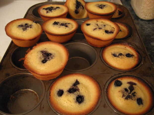 Es exactamente la descripción que se utilizaría para esta tarta libre de gluten. Mis amigos se dividen en dos grupos al degustarlo: aquellos que les gusta el gomoso centro masticable y aquellos que les gusta la corteza dulce salada, por lo que elegí para hornear en moldes de muffin y resultan perfectamente bien para llenar dos moldes de muffin.