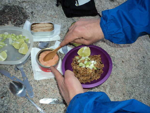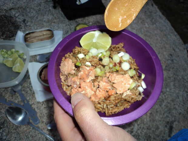 yo he ido en un viaje de mochilero con mi padre todos los veranos desde que tenía 4 años de edad y años de experimentar con comidas diferentes mochilero, hemos desarrollado unos favoritos. Esta comida es nuestra cosa favorita para hacer nuestra prim