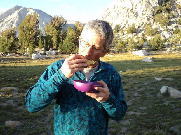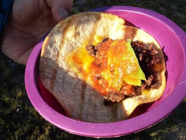 yo he ido en un viaje de mochilero con mi padre todos los veranos desde que tenía 4 años de edad y años de experimentar con comidas diferentes mochilero, hemos desarrollado unos favoritos.  Esta comida es nuestra cosa favorita para hacer nuestra primera noche en las montañas después de caminar todo el día.  Tiene algunos ingredientes pesados y unos ingredientes que no mantienen por mucho tiempo, pero es muy simple y es una gran cosa que ver mientras que cargar sus paquetes pesados encima de una montaña a 9.000 pies!