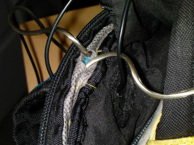 tomar ahora el cable del auricular (mina tiene un control de volumen pero que no es necesario) y coloque un lado del orificio para auriculares en la mochila. debe salir justo al lado de donde están poniendo el amplificador. CASI LISTO! ahora sólo Conecte la batería recargable, conecte los cables de conexión e hilos de los auriculares el amplificador, conecte el cable de alimentación de las pilas amp y amp putthe, y los cables en la bolsa para conseal en.