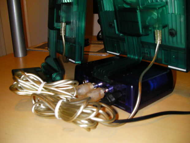Altavoces ordenador barato deben ser en dos partes, un orador con todas las tomas en el mismo y un altavoz con sólo un cable que de él hacia fuera el otro altavoz. en los altavoces que tenía el amplificador era desmontable así que me quité el amplificador y sacó los dos cables de conexión de cada altavoz. todo lo que necesita de esto es los 2 conexión de los cables y el amplificador. Tome el adaptador de corriente y corte el cable apagado dando una buena 1 a 2 pies de cable.