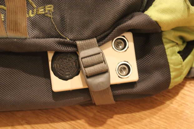 Para utilizar su nueva alarma antirrobo de mochila, tendrá que montarlo en tu mochila segura. En caso de un robo, no desea el ladrón para poder simplemente quitar la alarma. En las fotos adjuntadas, muestro una forma sencilla de montar rápidamente a casi cualquier mochila; sin embargo, no es la opción más segura.