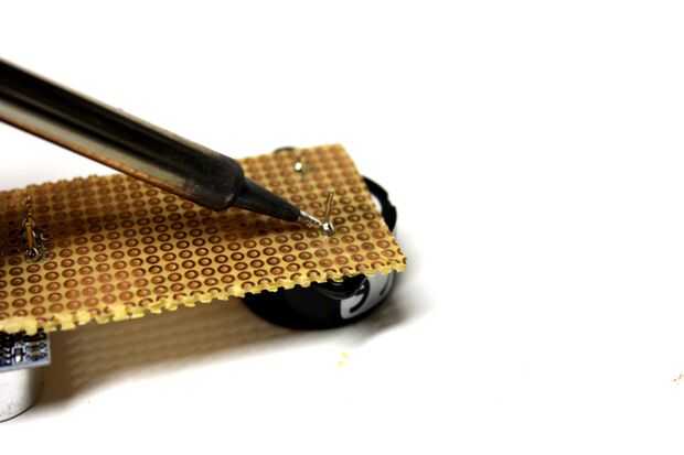 Cuando todos sus componentes principales son soldadas en las posiciones correctas en su perfboard, podemos empezar a hacer nuestro interruptor de seguridad de 5 bits.