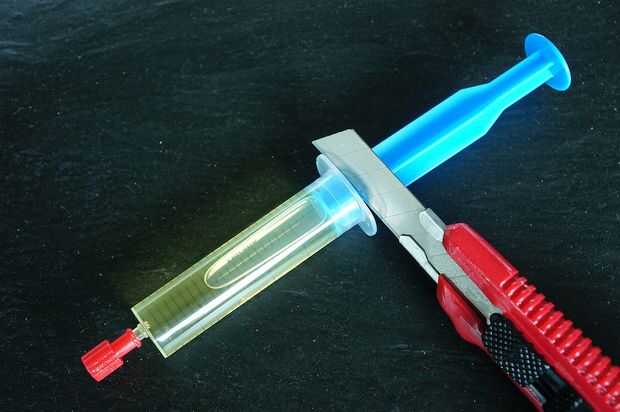 • Incluso puede cortar la jeringa sí mismo si está parcialmente lleno y tirar el émbolo pasado - solo uso el cepillo de dientes como reemplazo...