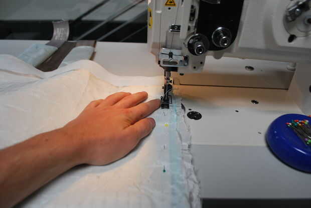 Este es el paso que va a ser más difícil para su máquina de coser. Puede coser a través de siete u ocho capas de tela en las secciones más gruesas.