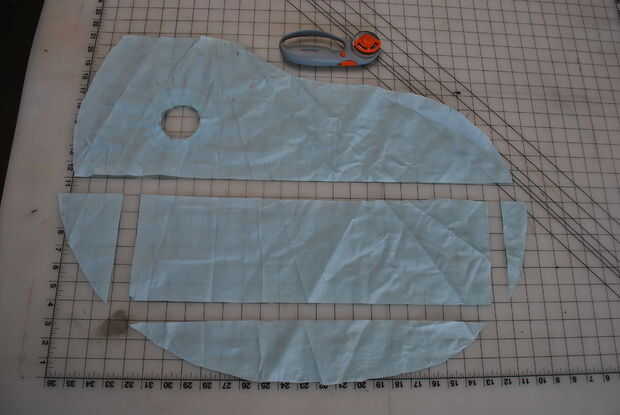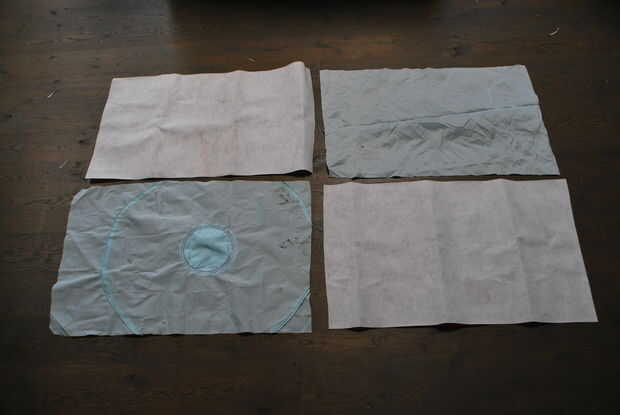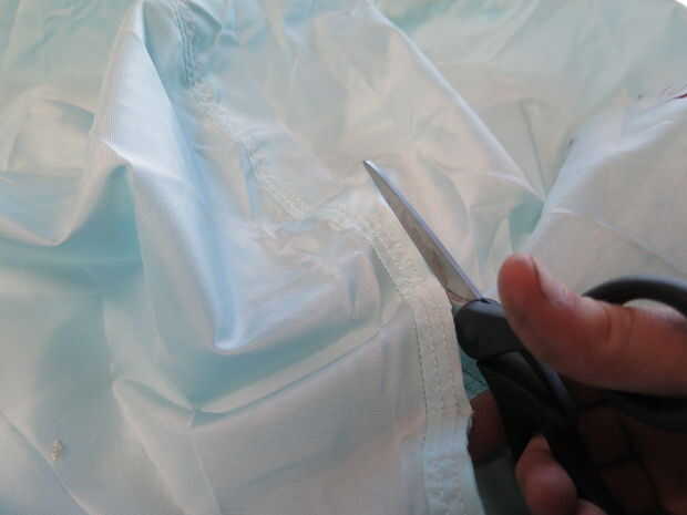 Cortan las bolsas de aire a lo largo de las costuras para crear las secciones posible más grande de la tela. La mayor rectantluar que pude conseguir fue aproximadamente 24 por 32 pulgadas.