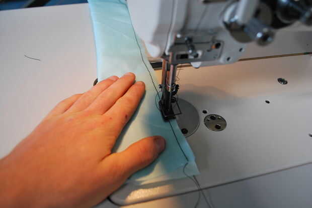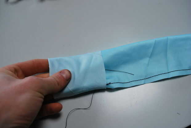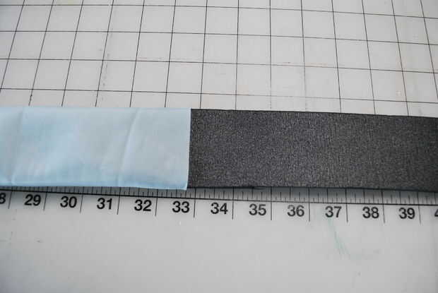 Las correas se crean simplemente coser un tubo. El tubo es de 2,5 pulgadas de ancho y 20 pulgadas de largo. Después de girar el tubo interior hacia fuera, del hilo de rosca finos de la sección de espuma de célula estrecha y una 26 pulgadas pieza de cinta a través del tubo. La cinta debe estar al ras con el extremo superior del tubo y sobresalen por 6 pulgadas en la parte inferior.