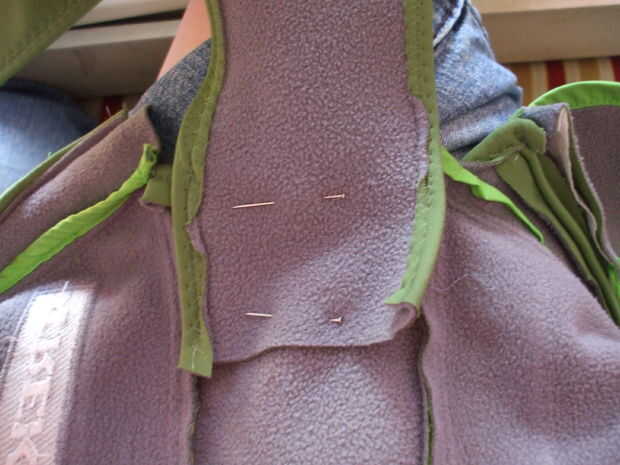 Pin de los extremos de la correa a cada costado por lo menos dos pulgadas. Coser alrededor del perímetro de las 2 pulgadas y cruzar de una esquina a otra. Se verá como una X en una casilla (jaja o una xbox)