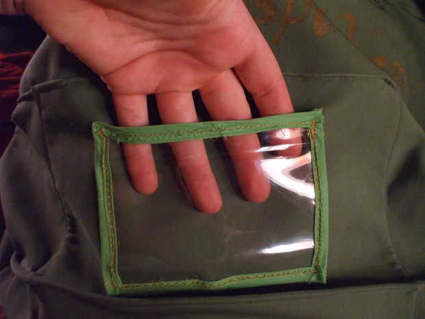Pin el marco a la bolsa en la parte superior e inferior, escoge un lado como la parte superior.