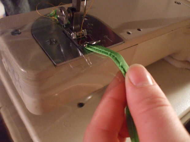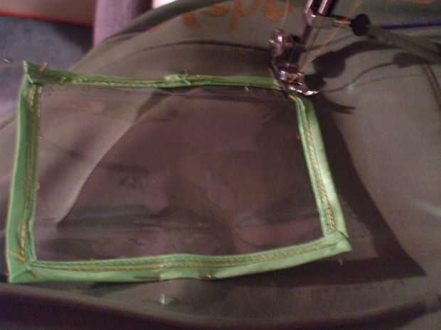 Coser un pedazo de chatarra colorido alrededor del exterior del plástico.