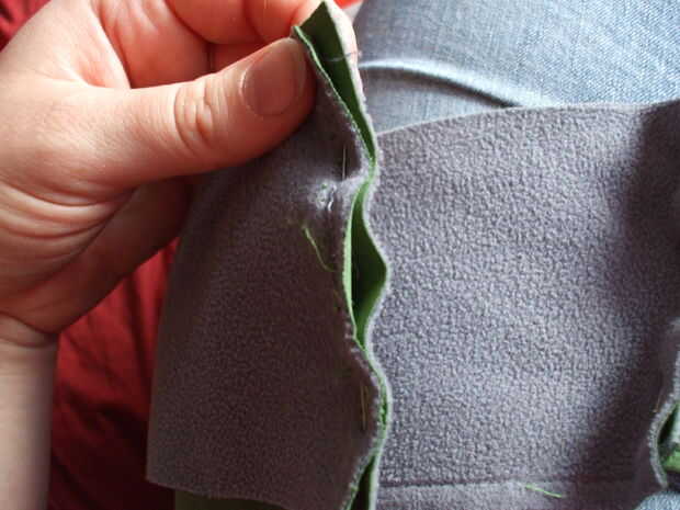 Dobladillo todos los bordes ásperos y doble vuelta con una puntada de refuerzo.