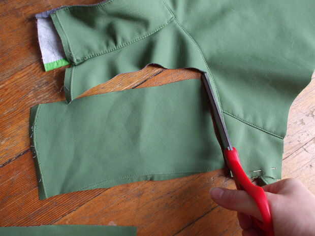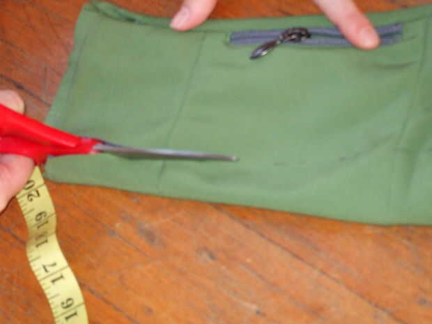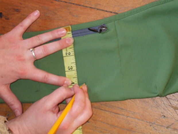 Desde el lado de la cremallera de la manga, medir 4 pulgadas, marque la longitud del material y corte a lo largo de la marca.