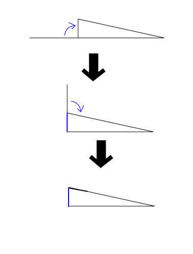 (Imágenes muestran perfil lateral). Después de que el pegamento se haya secado, todo de la espalda que no se pega por las pestañas es doblado hacia arriba y luego plegada en la parte delantera de la caja.