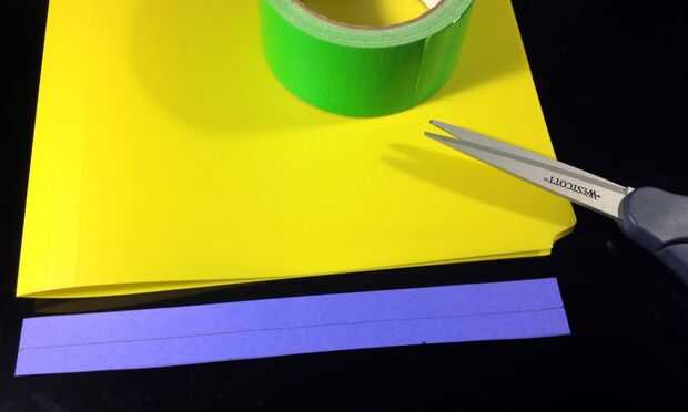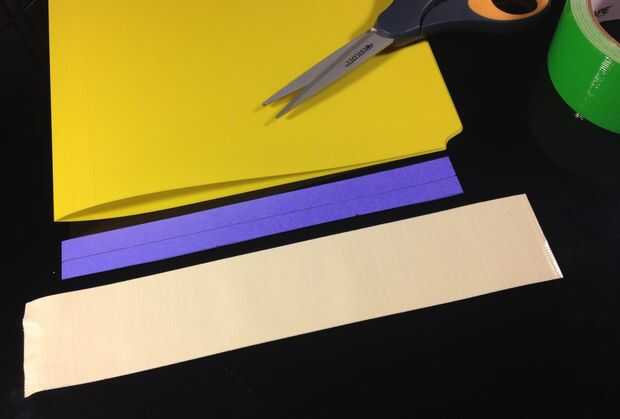 1. Comience cortando una tira de papel la longitud del borde corto de la carpeta de archivo y cerca de la mitad el ancho de la cinta. Esta tira de papel se envuelve alrededor del borde inferior de la carpeta, impidiendo que el lado pegajoso de la cinta del conducto en el pliegue adjuntar a sus documentos.
