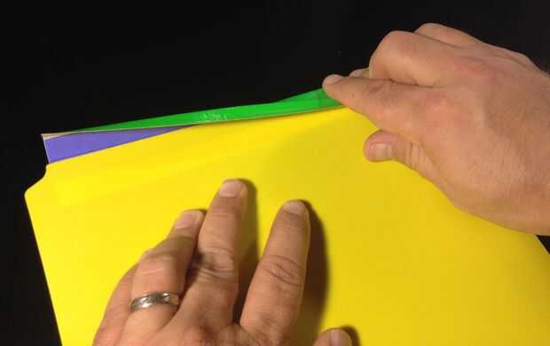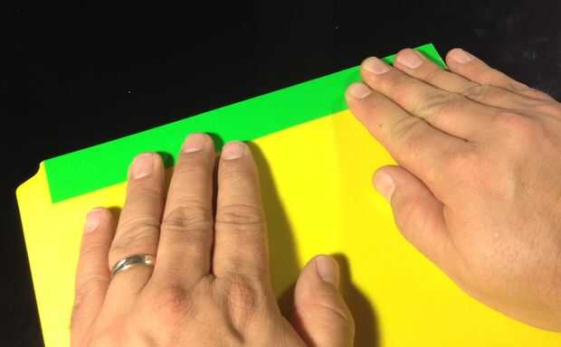 A continuación, doble la tira sobre el borde de la carpeta y presione firmemente la cinta para asegurarla.