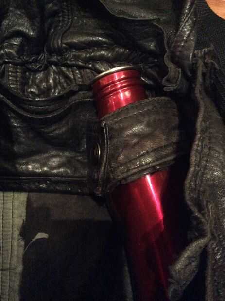 A ambos lados junto a los bolsillos que sólo cosidos no dude coser el puño de la manga de la chaqueta para hacer una perfecta portabotellas. Coser el puño con una línea vertical por lo que todavía puede tomar el brazalete/pulsera juntos. Recomiendo usar la lezna de costura para este paso sólo para añadir fuerza necesaria.