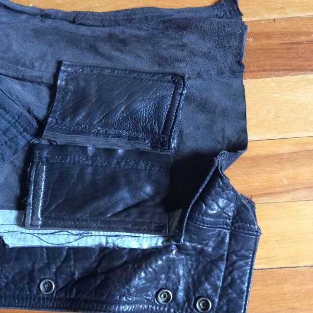 No te preocupes sobre la tela de la guarnición (lo que no es cuero) vamos a actuar como que no hay y no ofrece ninguna fuerza real a la bolsa. Dicho esto podemos pasar ahora a los bolsillos que son bastante simples, en el interior de esa primera pieza corte (no el lado liso que es el acabado cuero pero el tipo suave de fuzzy bajo piel) tomar uno de los parches rectangulares o restos de un anterior recorte y colóquelo donde desee el bolsillo para ser. Para mí esto fue aproximadamente dos pulgadas desde el borde superior y aproximadamente tres pulgadas desde el borde de cualquier lado. Entonces adelante y coser tres lados del parche a la pieza principal (la pieza que forma la espalda, frente y fondo). Coser el bolsillo para que el cuarto lado no cosido es accesible desde el borde superior de la bolsa, por lo que una vez terminada la bolsa se puede acceder a los bolsillos. Puse los bolsillos en el otro extremo de la pieza principal, así, recuerde que al hacerlo para dejar la cara hacia el borde superior no cosido para que la abertura no está en la parte inferior cuando todo es dicho y hecho.