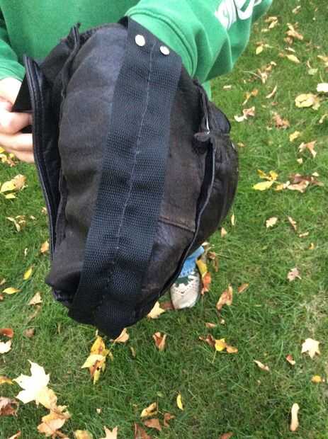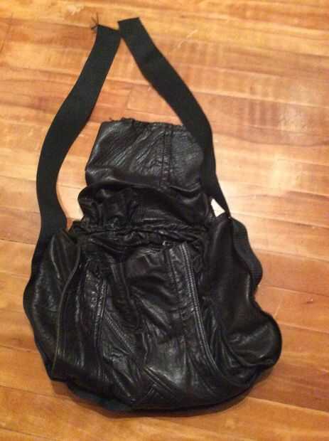 Ahora vamos a añadir la aleta. Tomar la manga cortamos desde antes y alinéelo con la parte interior de la bolsa para que el extremo que se conecta al hombro ahora está superponiéndose con el interior superior borde (esto es el borde de la cartera futura que desea descansar contra usted cuando usted está llevando) luego coser justo paralelo a lo largo de la superposición de la manga y el satchel dentro de borde. Debe poder abrir y cerrar la bolsa por la manga en la parte superior y de la apertura de la bolsa los bancos. Por último coser justo al final de la manga (donde la muñeca sería si se usarlo) para que no se puede alcanzar dentro de la manga.