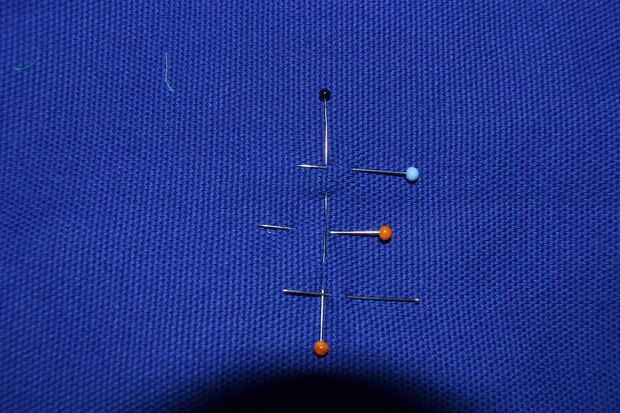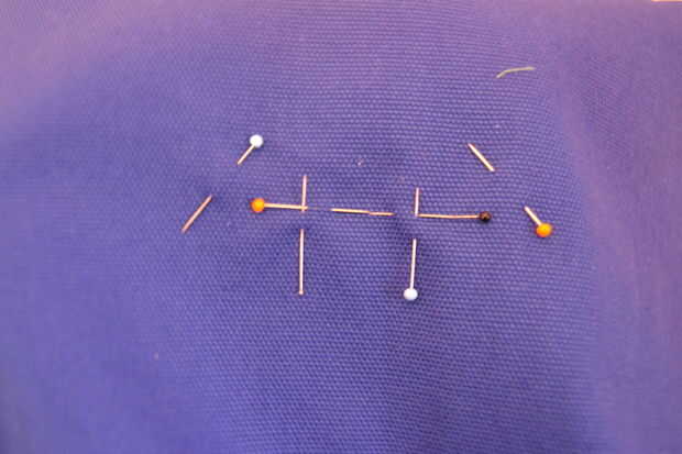 antes de coser ambas piezas juntas marcan el lugar en el exterior donde estará el cinturón para el mosquetón con pines de la derecha (exterior) lado con pernos.