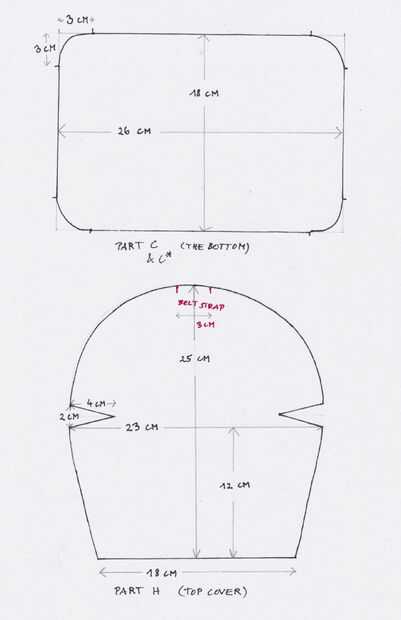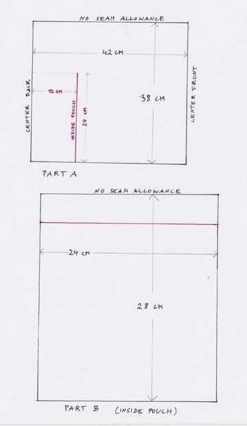Estas medidas (excepto los dos trocitos de tela para el forro) están sin margen de costura - agregar 1 cm de margen en todos los lados antes de cortar las piezas. donde no hay margen de costura es necesaria se indica en el scematics.