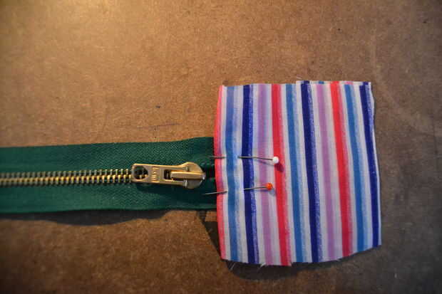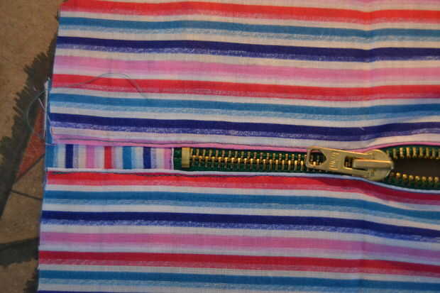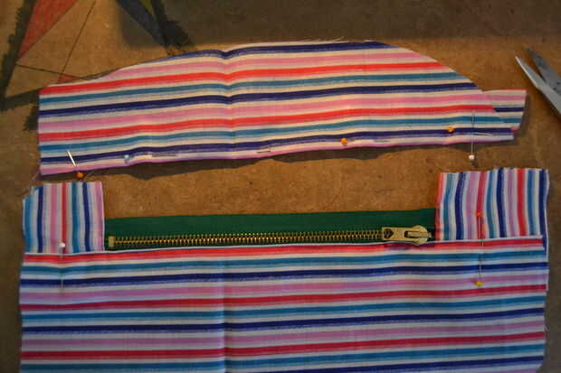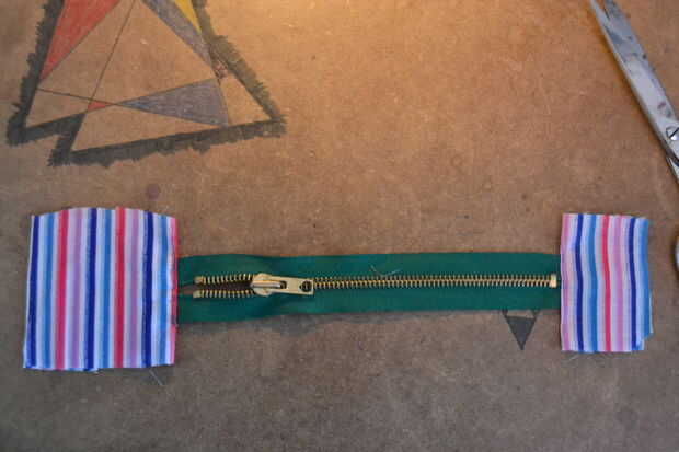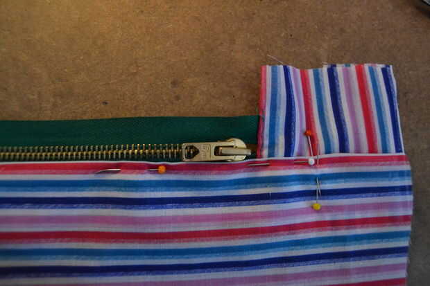 Luego doblar en la costura de piezas días y e donde va la cremallera, la clavija a la cremallera y cose.