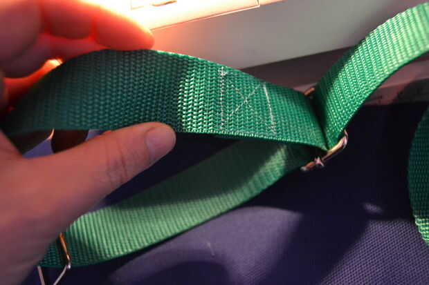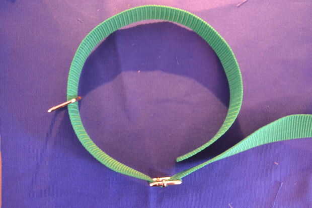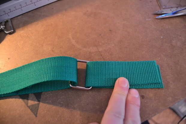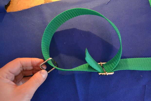 forme un bucle con el resto de la correa y poner la correa a través de la primera parte de metal (con la barra movible) otra vez - ver fotos de cómo se hace. Tire del extremo a través de unos 6 cm y luego doblar hacia el resto de la correa que a tirado a través.