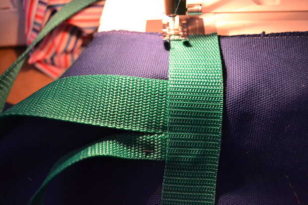 coser 2 veces más y hacia atrás sobre el borde superior de la costura porque habrá un montón de tensión en esta parte de la mochila y desea que la costura sea robusto extra.
