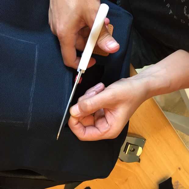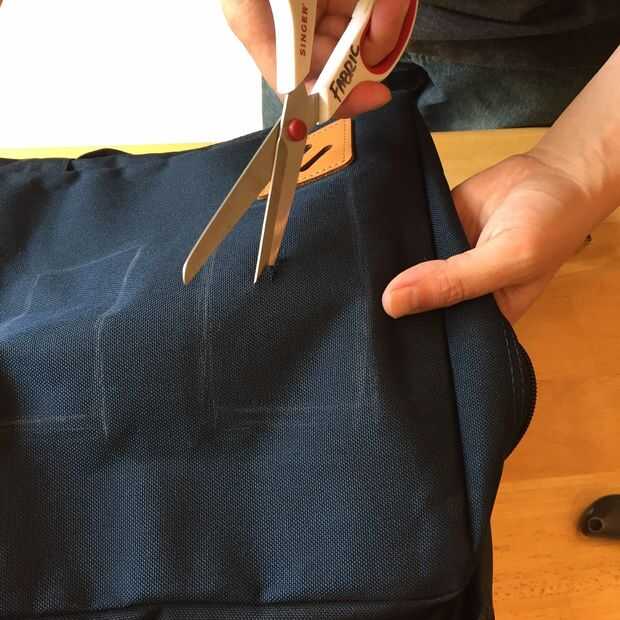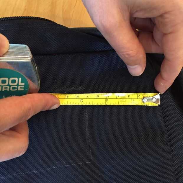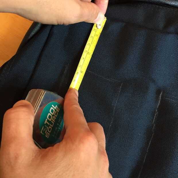 PRO TIP: mida dos veces y corte una vez. Mis marcas iniciales fueron por la sensación, pero luego tiró el fieltro de la mochila y verificado mi marcas para estar en el lugar adecuado midiendo con una cinta métrica. Asegúrese de que haces esto. No quiero hacer los agujeros demasiado grandes!