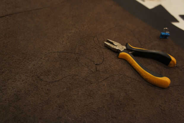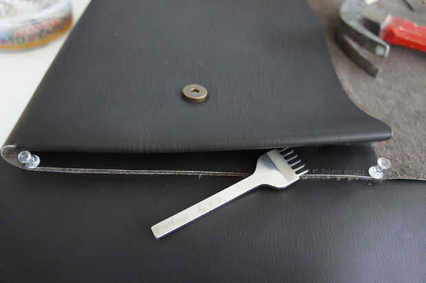 • Puesto que usted va perforando a través de 3 capas de cuero, tenga cuidado para que el ángulo sea constante.
