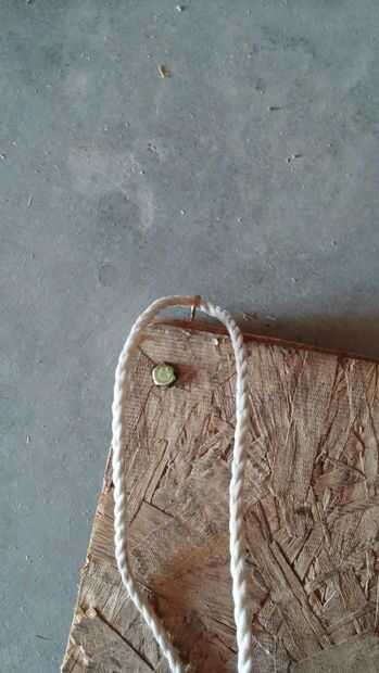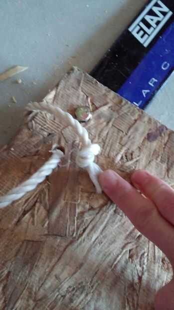 Pase la cuerda por el agujero recién perforado y lo del nudo.