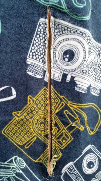 Coloque la cremallera debajo de las ranuras en el bolsillo (Pa) y la Interior trasera (Ib). Coser por los costados, para que la cremallera puede deslizarse libremente dentro de la ranura. Cortar exceso cremallera.