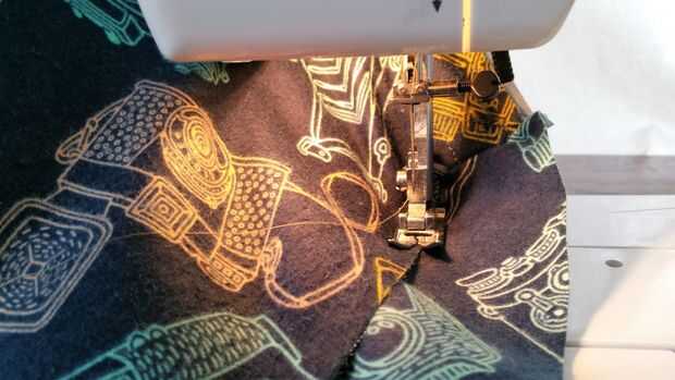 2. al llegar al final de la parte inferior de la Interior trasera (Ib), parada con la aguja hacia abajo, sosteniendo a la tela en su lugar. Levantar el pie de máquina de coser y llevar restante gire la tela Interior del Panel frontal (Ia), en 90 grados. Esto es lo estará haciendo esquinas con nuestra tela. Poner el pie hacia abajo y coser en la nueva dirección hasta el comienzo de la sección del ordenador portátil del Panel (Ic), o si usted no incluyendo, el extremo del lado.