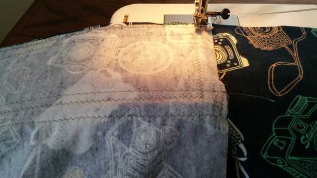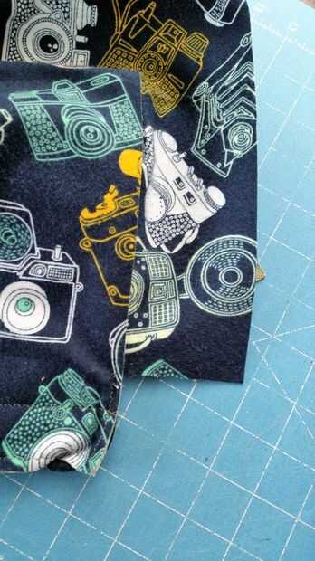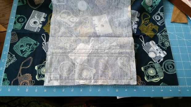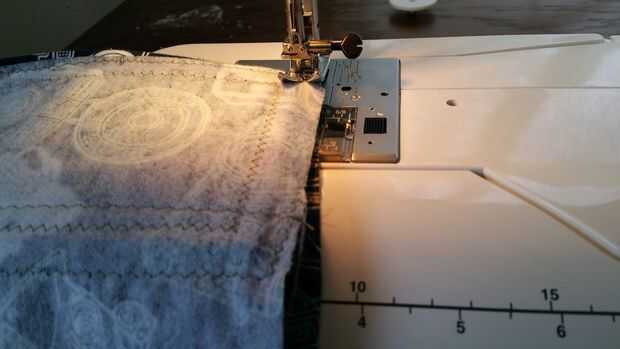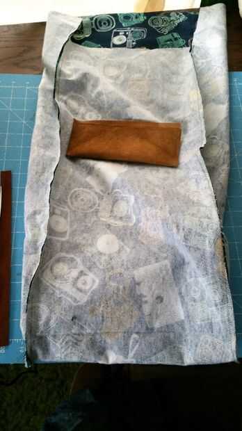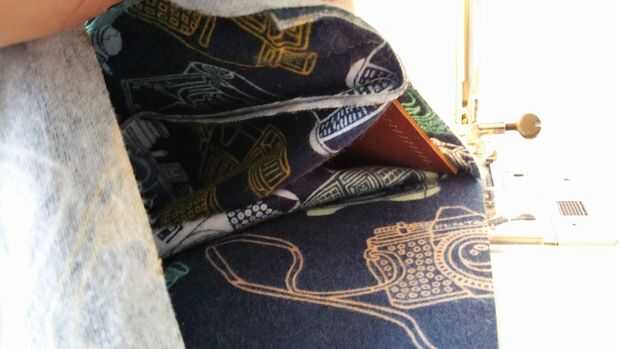 3. hacer una esquina con el Panel frontal Interior (Ia) y la Interior trasera (Ib) y coser el lado hasta el final de la tela.