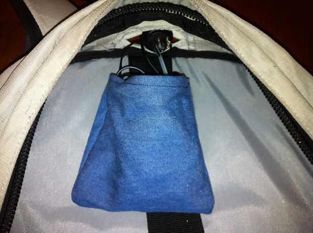 El siguiente paso es sembrar un bolsillo o bolsa dentro de la mochila para el recinto para sentarse pulg (también se trata de un viejo cuadro ignore el interruptor en el agujero de la mochila).