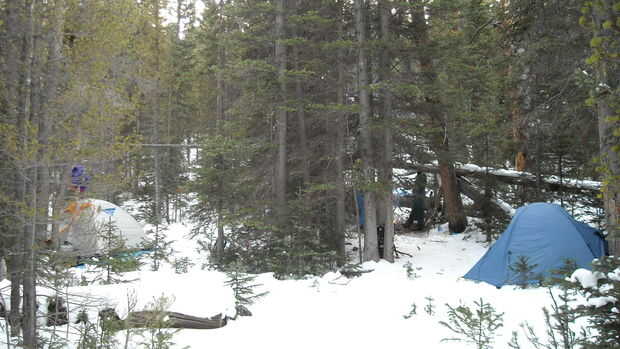 No quiero ser paranoico, pero mirar hacia fuera para cosas como árboles inestables, un montón de pistas de Sasquatch y terreno pendiente. Una cosa realmente agradable sobre nieve, es que puedes pila en cualquier lugar y hacer un cojín perfectamente plano para su tienda! Se sorprenderá de lo difícil que es encontrar un lugar plano en el verano...
