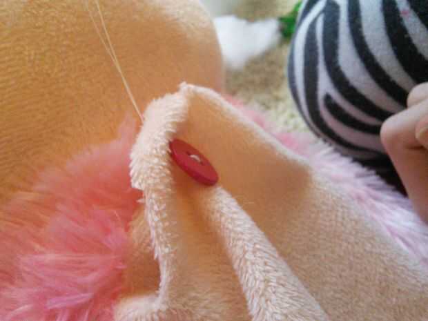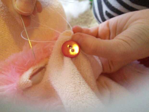 Coser el botón en la parte no fijada en la cabeza y coser en