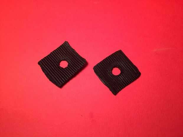 Finalmente, repita el proceso con dos pequeños trozos de cinta de nylon de 4 cm x 4 cm que se utilizará para reforzar la fijación superior.