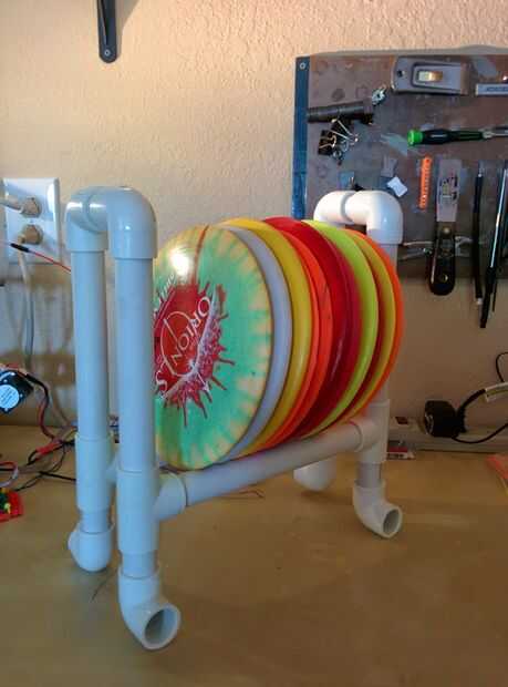 He utilizado 3/4 de pulgada pvc que tenía en mano. Debe ser bastante obvio de la imagen qué va dónde. Corté la horizontal piezas de 25 cm y la vertical piezas de 18 cm. Las secciones más cortas de pvc que utilicé en la parte superior y los pies fueron de 10 cm. El diseño original no tenía los pies en la parte inferior. Quería que mis discos de paseo un poco más alto en la bolsa y esto también permite el almacenamiento en los discos (camiseta y toallas extra, un par de cervezas, un altavoz de diente azul, etc.).