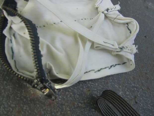 Tip: como veis en la foto, temporalmente utilizado una grapadora para probar la longitud del elástico en el ave, antes de coserlo más corto en su longitud final.